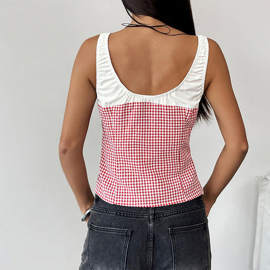 Gingham Geruite Top Dames | Slim fit tanktop met strikdetail in katoenmengsel
