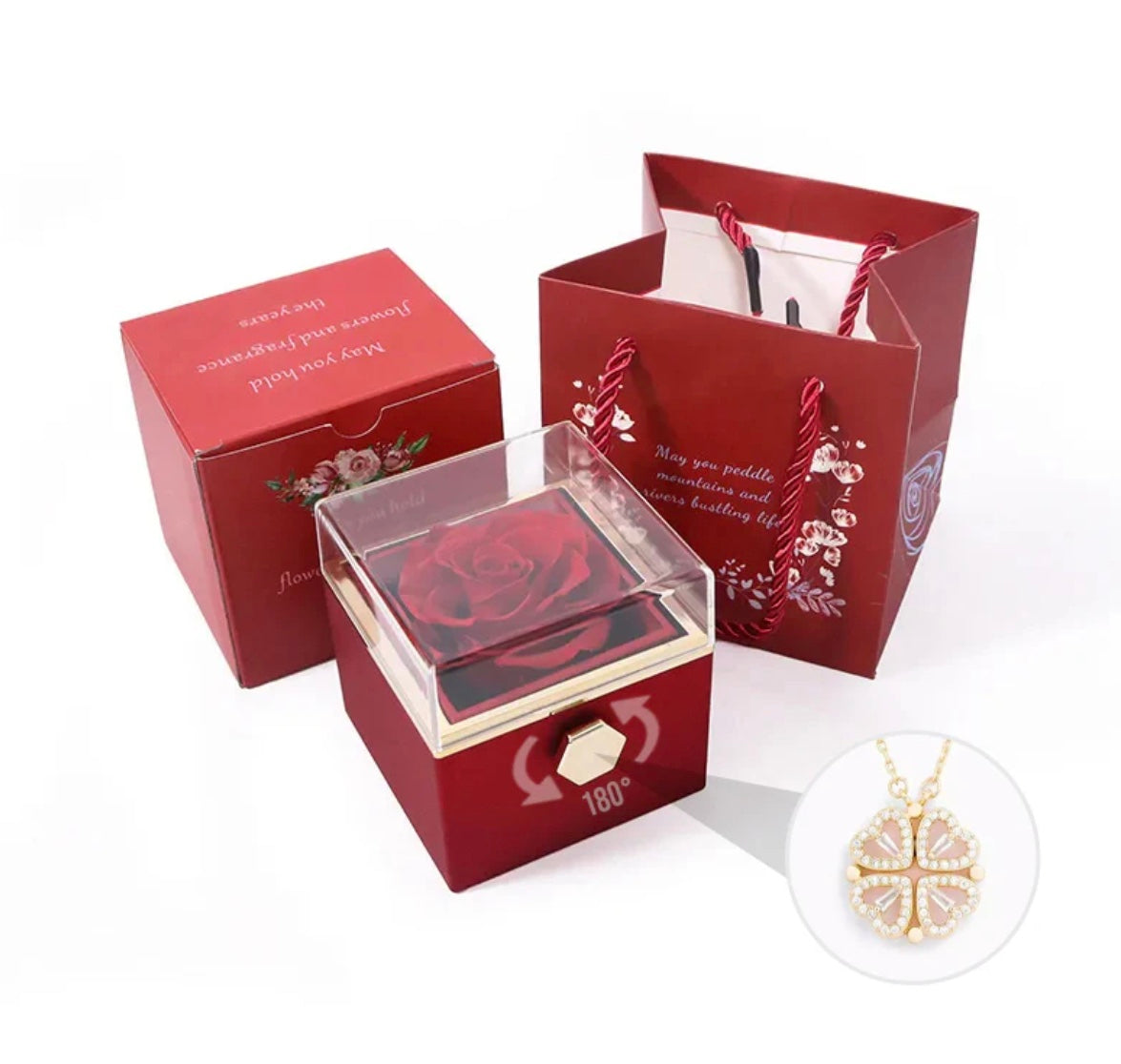 Dit unieke en veelzijdige sierraad kan gedragen worden als een klavertje vier of als vier afzonderlijke hartjes. De ketting staat voor geluk en liefde in één. Door de ketting dagelijks te dragen straal jij van geluk en wint de liefde het van het kwaad in 2024.